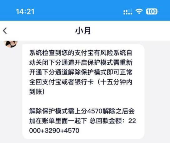 好不容易充了钱,第二次提现又出幺蛾子,平台再次以“支付宝存在风控问题”为由,要求继续充值5000元。
